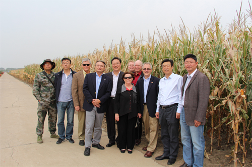 公司總經(jīng)理臧薪宇在主樓門前迎接考察團一行,對考察團的到來表示熱烈歡迎,并結(jié)合現(xiàn)場環(huán)境簡要介紹了公司歷史和基本情況。隨后,考察團一行步行參觀了公司試驗基地。北方中心負責人劉文國在實驗基地向考察團成員詳細介紹了公司玉米新品種的研發(fā)情況及展示品種的特征特性等情況。雙方進行了充分的交流??疾靾F一行參觀后對我公司玉米品種研發(fā)及科研成果給予了充分的肯定和好評。