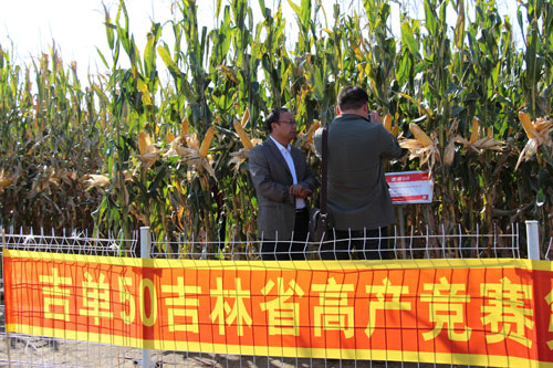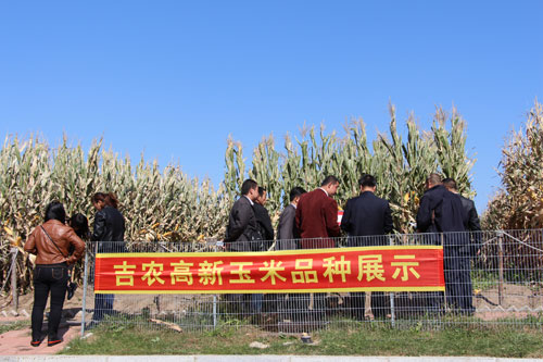 室外的50畝雜交玉米品種種植展區(qū),展示了當(dāng)前國(guó)內(nèi)種企最前沿、具潛力的優(yōu)良品種,是此次展會(huì)有別于前十屆的一次創(chuàng)舉,成為本次展會(huì)的一大特色。展區(qū)按品種熟區(qū)劃分,我公司展出了吉單50、吉單558、吉單631、吉單441、吉單33、吉單53、吉單27等11個(gè)名優(yōu)新品種,這些品種展現(xiàn)出了優(yōu)良的綜合性狀。吉林省種子管理總站陳學(xué)軍副站長(zhǎng)、研究員主講介紹的“室外種植展區(qū)品種種植情況報(bào)告會(huì)”的數(shù)據(jù)統(tǒng)計(jì)報(bào)告中,我公司報(bào)送的吉單50、吉單441、吉單631、吉單53、吉單558、吉單27更是以優(yōu)異的綜合表現(xiàn),在全種植區(qū)170余份展示品種中,成為38個(gè)綜合性狀最優(yōu)秀豐產(chǎn)性最好的品種之一。